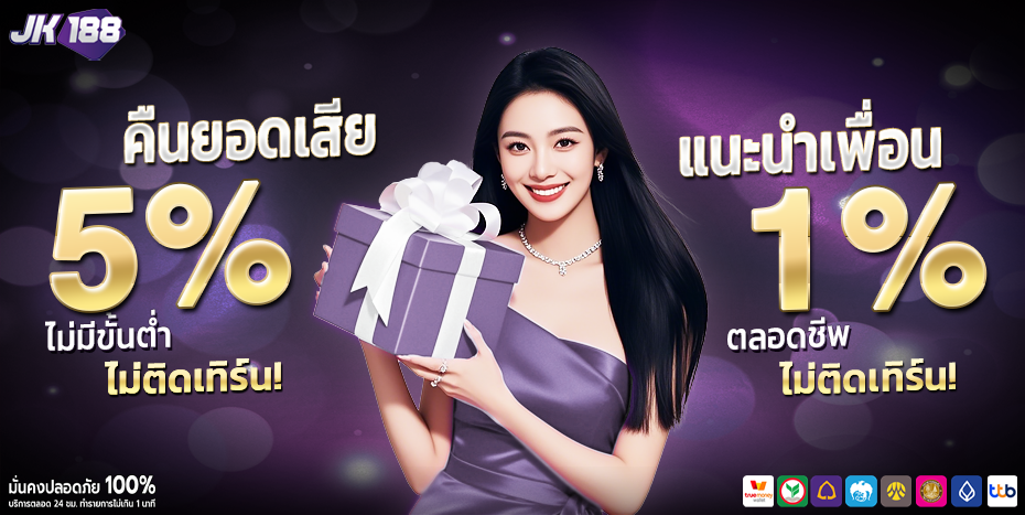 JK188 ให้ความสำคัญกับการมอบประสบการณ์การเดิมพันที่คุ้มค่าที่สุดให้กับสมาชิกทุกท่าน ผ่านโปรโมชั่นและโบนัสมากมายที่น่าสนใจ เพื่อนๆ ที่เพิ่งสมัครสมาชิกใหม่จะได้รับโบนัสต้อนรับสุดพิเศษถึง 100% ของยอดฝากแรก ซึ่งสามารถนำไปใช้เดิมพันได้ทันทีในทุกเกมที่ต้องการ